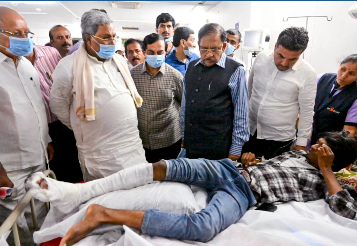 Thủ hiến bang Karnataka và các quan chức địa phương thăm hỏi những người bị thương sau vụ việc. (Ảnh: ANI)