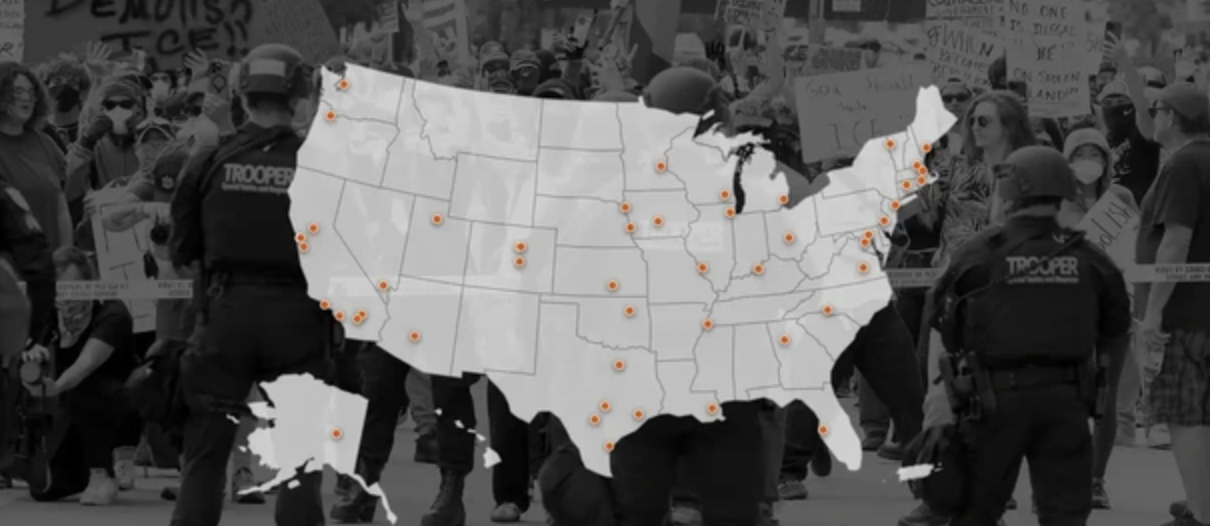 Trong vòng một tuần kể từ khi các cuộc biểu tình phản đối Cơ quan Thực thi Di trú và Hải quan Mỹ (ICE) bắt đầu ở trung tâm Los Angeles, hơn 45 thành phố trên hàng chục tiểu bang nước Mỹ đã tổ chức các cuộc biểu tình để phản ứng lại chính sách siết chặt nhập cư của Tổng thống Donald Trump và quyết định gửi Vệ binh Quốc gia và Thủy quân Lục chiến vào thành phố Nam California.