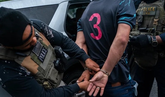 8 người, gồm các đặc vụ từ ICE và FBI, vũ trang đầy đủ, thực hiện nhiệm vụ từ mờ sáng, bắt được hai người nhập cư trái phép trong hai tiếng.