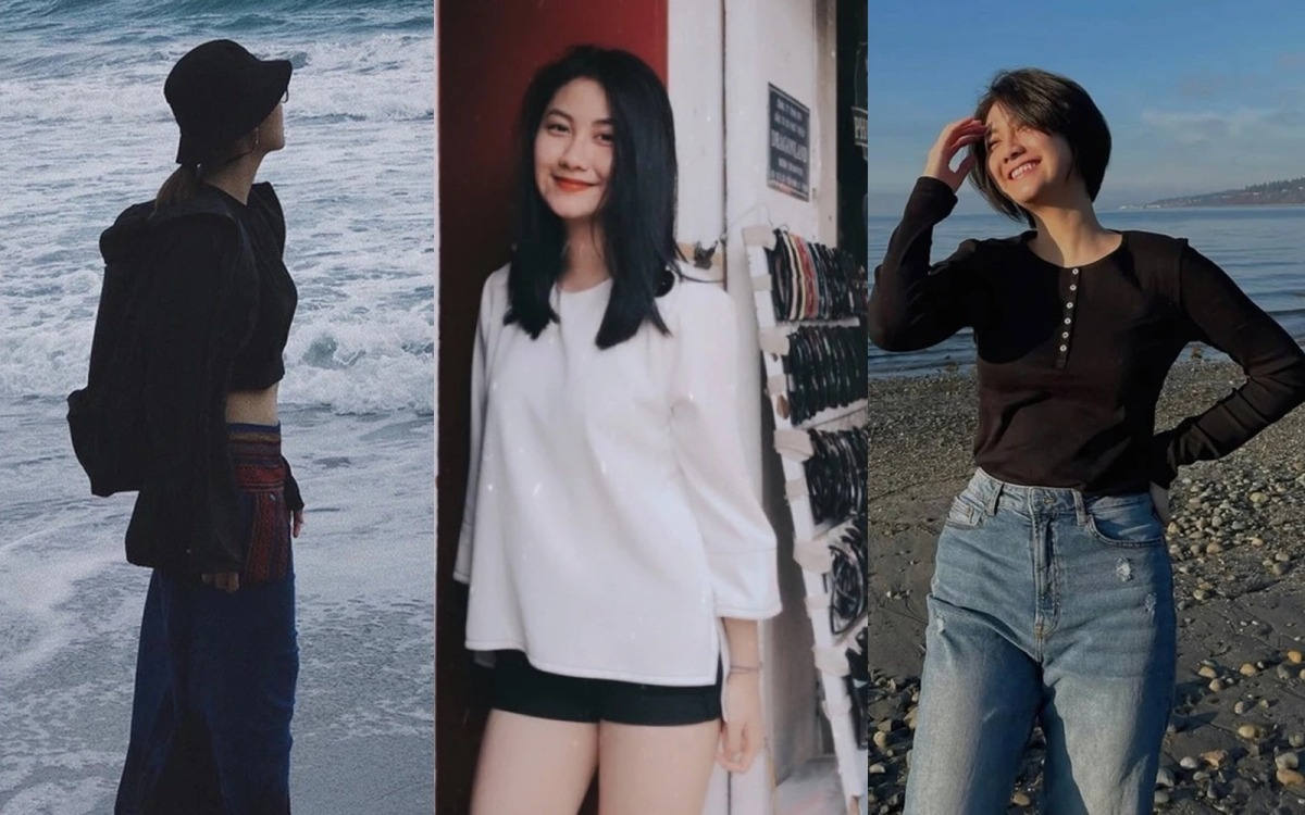 Người đẹp chụp ảnh với phong cách trẻ trung trong một chuyến du lịch năm 2021. Cô để mái tóc ngắn khác lạ so với hình ảnh hiện tại.