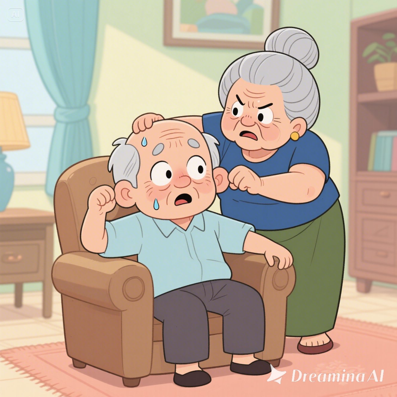 Bà Út sấn tới, véo tai ông: