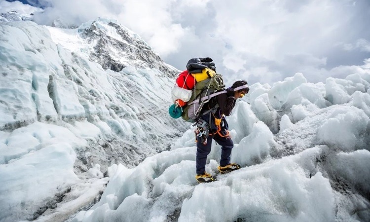 Một người Sherpa ở thác băng Khumbu, Nepal. Ảnh: Nat Geo