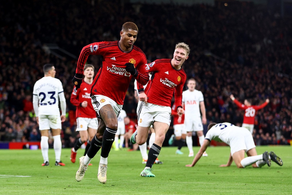 Rashford ăn mừng sau khi ghi bàn trong trận Man Utd - Tottenham ở Ngoại hạng Anh trên sân Old Trafford ngày 14/1/2024. Ảnh: Reuters