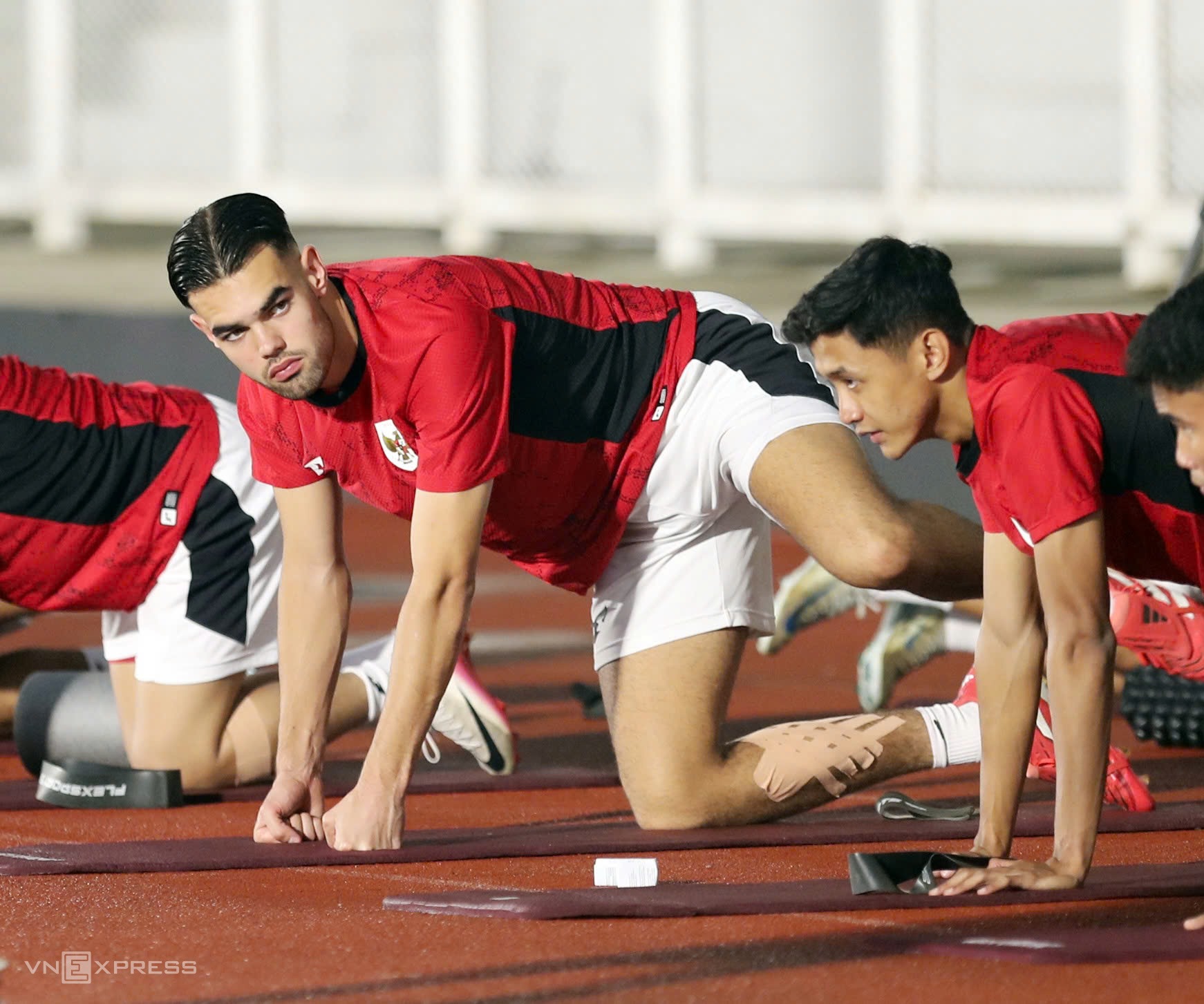 Indonesia cũng giữ kín thông tin về tiền đạo sinh năm 2005. Đến buổi tập hôm nay, anh ra sân với bắp chân phải dán nhiều băng giảm đau mỏi cơ. Anh đi giày thi đấu, và thực hiện các bài tập như đồng đội.