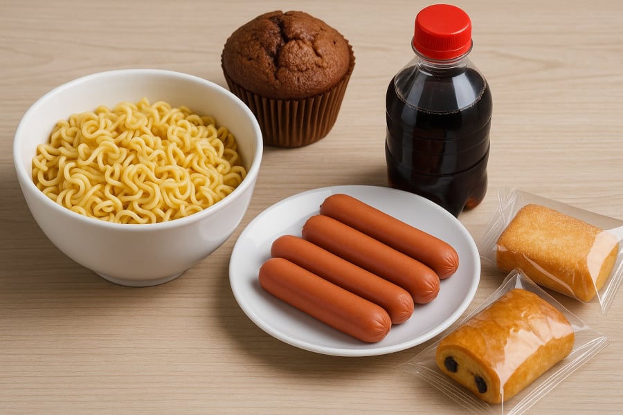 Ngày nay, giữa nhịp sống bận rộn, nhiều người chọn cách ăn uống tiện lợi bằng các loại thực phẩm chế biến sẵn. Mì gói, xúc xích, bánh mì đóng gói, nước ngọt có ga, pizza đông lạnh… tất cả đều nằm trong nhóm thực phẩm siêu chế biến (Ultra-Processed Foods – UPF). Nhóm này được đặc trưng bởi việc chứa nhiều phụ gia công nghiệp như chất bảo quản, tạo màu, tạo mùi, chất ổn định và các thành phần hiếm khi thấy trong gian bếp gia đình.