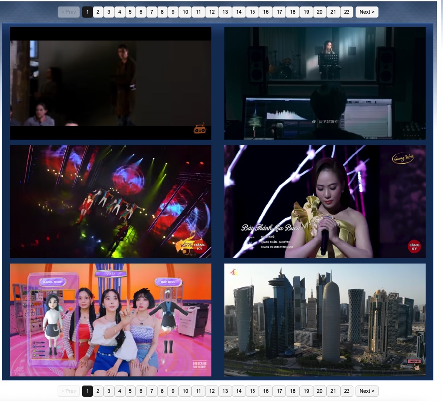 Mỗi page sẽ có 6 playlists. Tạm thời có 22 pages, trang 1 là ca nhạc, từ 2 tới 21 là phim bộ, trang 22 trở đi là các danh sách khác.