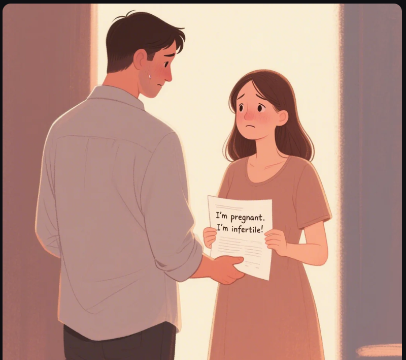 Rồi đưa cho vợ tờ giấy kết quả. Trên đó ghi: "Em đã có bầu. Anh bị vô sinh."