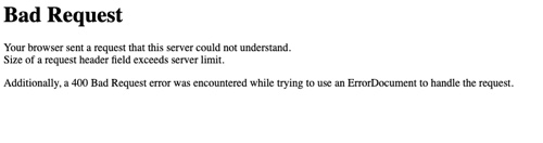 Lỗi 400 kèm dòng “Size of a request header field exceeds server limit” xuất hiện khi một header quá dài, thường là Cookie. Thường hay chỉ gặp với một số trường hợp đặc biệt, thường là Moderator move bài , xoá bài một lúc quá nhiều hoặc một số thành viên quote quá nhiều bài cùng một lúc (trên 100-150-200). Lỗi này xuất phát do nhằm chống DDOS.