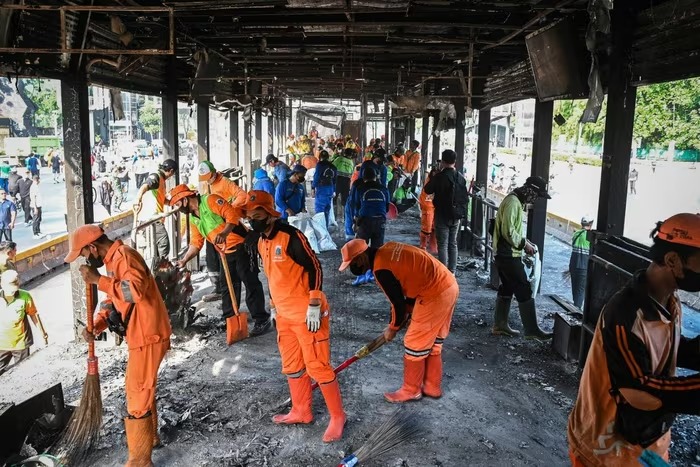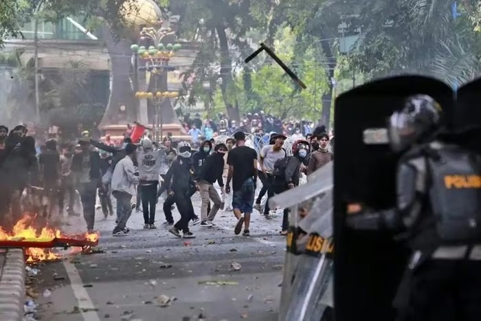 Biểu tình tại Jakarta (Indonesia) gây thiệt hại nặng nề cho cơ sở hạ tầng. Ảnh: Indonesia X