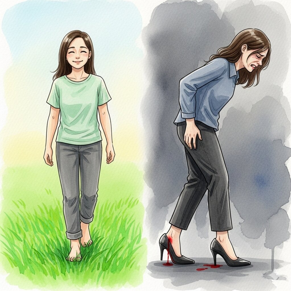Hạnh phúc không nằm ở việc có một đôi giày đắt tiền, mà nằm ở cảm giác bàn chân được bước đi nhẹ nhàng, tự do. Giống như cuộc sống, giá trị thật sự không phải ở vỏ bọc xa hoa, mà ở tâm hồn bình an và sức mạnh nội tại.