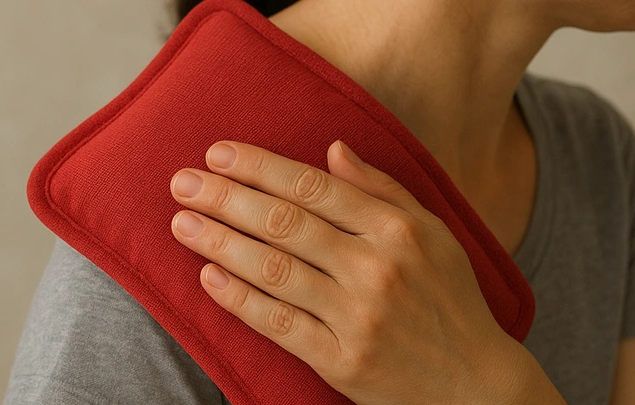 Sử dụng túi chườm nóng, khăn ấm hoặc miếng đệm nhiệt đặt lên vùng cơ bị căng.
