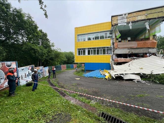Một nhà trẻ bị hư hại sau trận động đất ở Petropavlovsk-Kamchatka, Nga, ngày 30/7/2025. Ảnh tư liệu - minh họa: THX/TTXVN