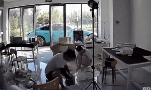 Theo đoạn phim giám sát được chủ xe chia sẻ, chiếc xe đỗ ngay trước cửa nhà anh trong khi anh và một người phụ nữ ở trong nhà. Đoạn video cho thấy chiếc xe khởi động và di chuyển về phía trước, khiến người phụ nữ hét lên hoảng hốt trong khi người đàn ông vội vã ra ngoài can thiệp.