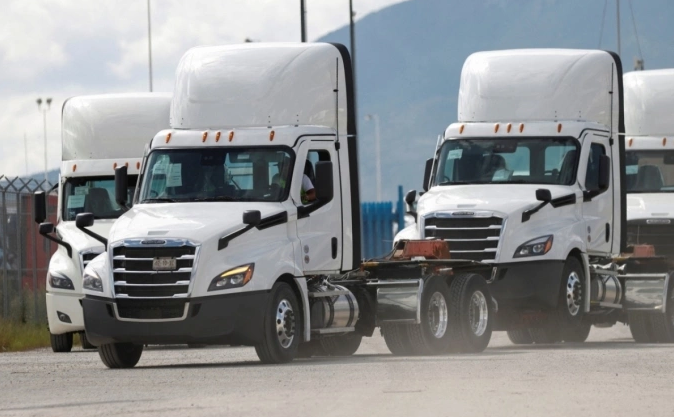 Các xe tải chở hàng tại nhà máy Daimler Freightliner ở Derramadero, Mexico. Ảnh: Reuters