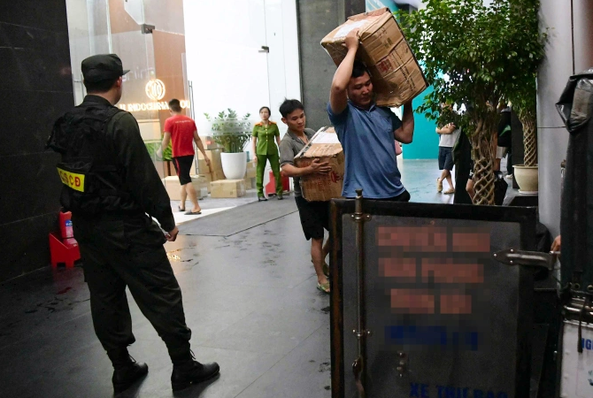 Trong tối 6/10 và ngày 7/10, nhiều công an liên tục xuất hiện ở tòa nhà số 18 phố Tam Trinh, phường Vĩnh Tuy, Hà Nội - nơi có trụ sở của Công ty NextTech của ông Bình. Đến tối muộn 7/10, hàng chục thùng tài liệu dán giấy niêm phong được chuyển lên xe tải, mang đi.
