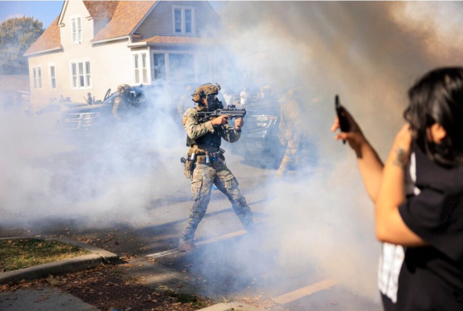 Các đặc vụ cũng ném bom khói, bắn đạn hơi cay để giải tán những người dân tụ tập quay video bằng điện thoại, khi thực thi lệnh bắt tại những khu dân cư đông đúc. Cảnh sát Chicago được điều đến một số vụ đụng độ đã hai lần bị ảnh hưởng bởi hơi cay từ lực lượng ICE trong hai tuần qua.