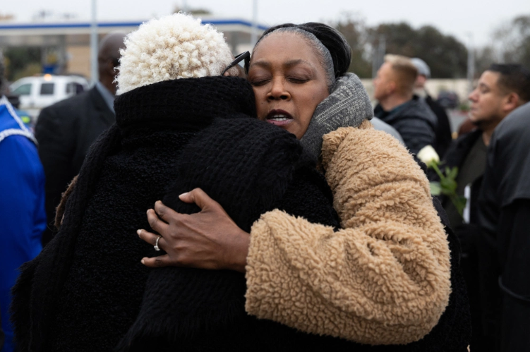 Người dân Stockton an ủi nhau trong buổi tưởng niệm nạn nhân vụ xả súng tiệc sinh nhật, ngày 30/11. Ảnh: AFP