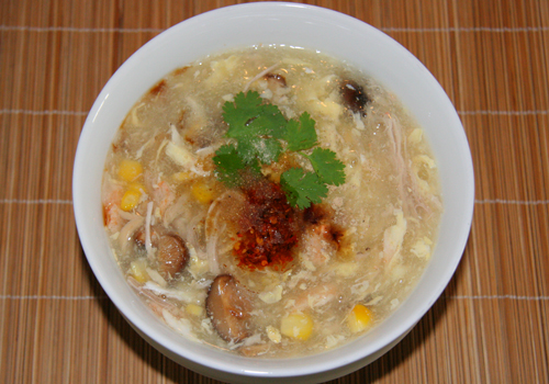 - Múc soup ra chén, thêm ít ớt sa tế, giấm, nước tương, dầu mè (nếu thích) rồi dùng nóng.