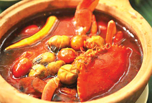 Thành phần: 200g gạch cua, một con cua thịt 800g, cà chua 500g, nấm rơm và linh chi 200g.