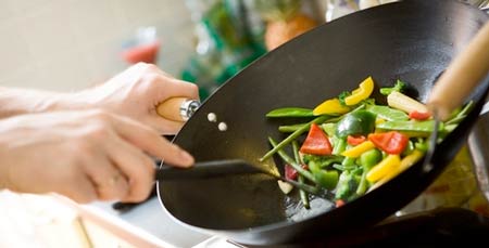- Nên dùng dầu, mỡ, tốt nhất là dầu thực vật, riêng dầu ôliu thì nên cho sau vì loại dầu này không chịu được nhiệt độ cao. Trước khi xào cần cho 2 muỗng canh dầu mỡ để làm nóng chảo và để chống cháy, dùng đũa dài khuấy liên tục giúp thức ăn chín đều, không bị sống, bị cháy.