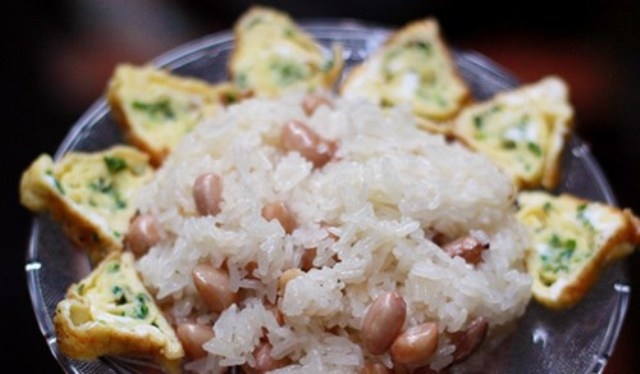 - Cho xôi ra đĩa, bạn có thể ăn kèm xôi lạc với trứng rán, ruốc bông hoặc muối vừng.