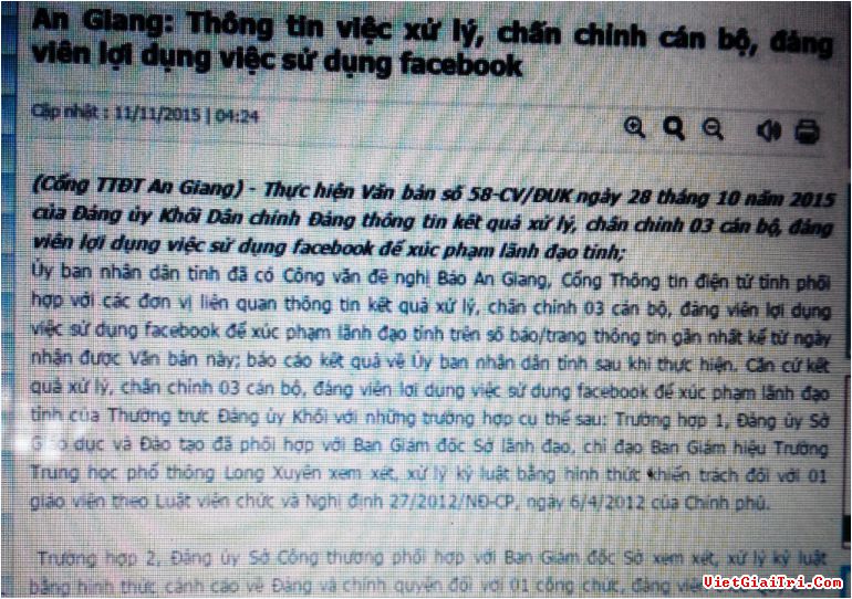 Ngày 11/11, thông tin vụ việc được Cổng thông tin điện tử tỉnh An Giang đăng tải về nội dung xử lý, chấn chính 3 cán bộ sử dụng mạng xã hội xúc phạm lãnh đạo tỉnh An Giang.