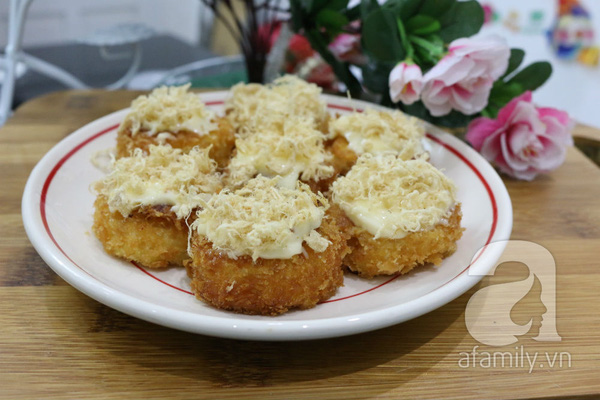 Tiếp đó, bạn phủ lên bề mặt từng miếng đậu một lớp mayonnaise.