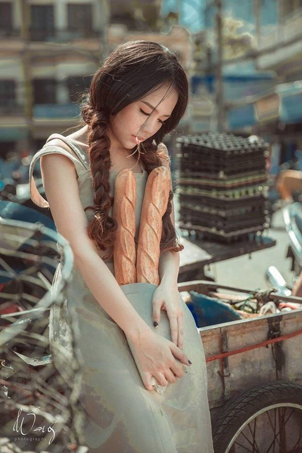 Cô gái xinh xắn này mặc chiếc váy cũ kỹ, ôm bánh mỳ đi bán trong khu chợ ở Sài Gòn với khuôn mặt buồn bã. Thi thoảng, cô lại dừng chân và dựa vào chiếc xe rác để nghỉ mệt. Khi có người chọc ghẹo, mỹ nữ bán bánh mỳ dạo lại nở nụ cười rất tươi và trông hiền dịu.