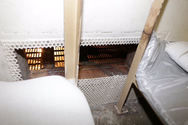 Tấm lưới thép của hệ thống đường ống nước bị các tù nhân cắt phá.