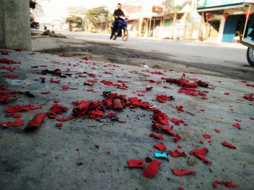 Xác pháo hồng trước cửa một nhà dân tại xã Phục Lễ, huyện Thủy Nguyên (Hải Phòng).