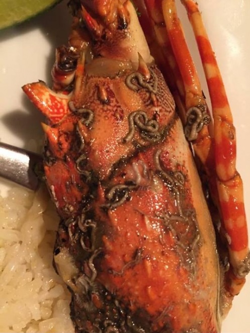 Hình ảnh dòi bám đầy con tôm hùm khiến người ta không khỏi rùng mình.