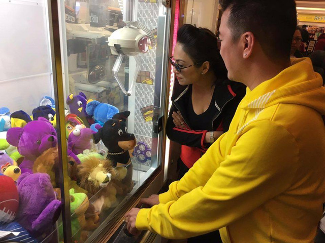 Khoảnh khắc ca sĩ "Xin lỗi tình yêu" chơi trò gắp thú trong trung tâm thương mại.