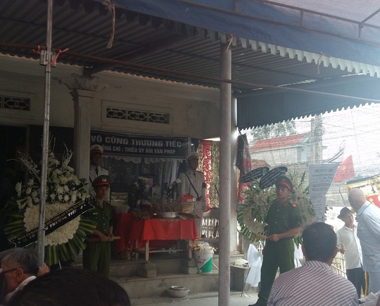 Trong tang lễ diễn ra ngày 12-5, Công an tỉnh Hà Tĩnh đã quyết định tăng cấp bậc hàm từ thiếu úy lên trung úy đối với chiến sĩ Bùi Văn Pháp.