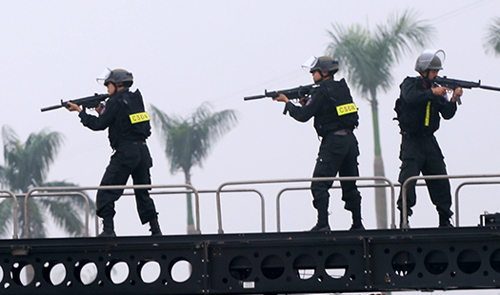"Lực lượng cảnh sát cơ động đặc nhiệm với 80 chiến sĩ (100% quân số) cũng trực 24/24 giờ, sẵn sàng với mọi tình huống xảy ra, đảm bảm an toàn tuyệt đối cho đoàn của Tổng thống Mỹ".