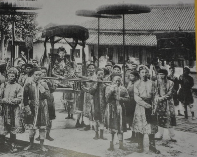 Vua Duy Tân (1900 – 1945) tên thật là Nguyễn Phúc Vĩnh San, con của vua Thành Thái và tài nhân Nguyễn Thị Định. Năm 1907, hoàng tử Vĩnh San khi đó 7 tuổi (sử sách thường ghi 8 tuổi vì triều đình xin tăng) đã lên làm vua. Bấy giờ quần áo còn chưa kịp may cho vua, Vĩnh San đành mặc long bào của cha để lại. Cậu bé vóc người nhỏ nhắn, khoác lên mình bộ quần áo đủ cân đai nặng đến 5kg nên đi không nổi, chỉ có thể ngồi một chỗ.