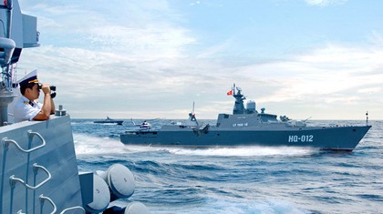 Một cuộc diễn tập của hải quân trên vùng biển quê hương có sự tham gia của tàu Lư Thái Tổ - Ảnh: Trọng Thiết