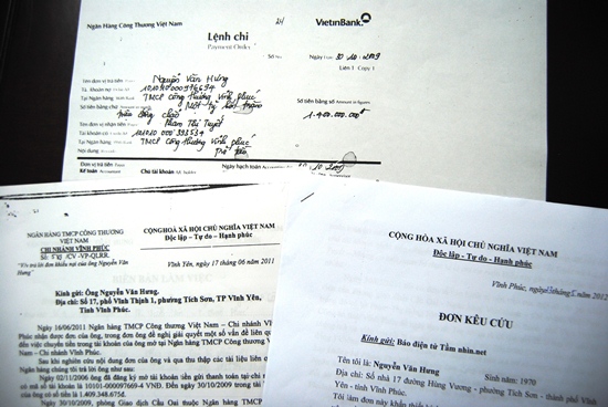 Anh Nguyễn Văn Hưng đã nhiều lần đề nghị và làm đơn khiếu nại (Don keu cuu cua anh Hung.pdf) đến Ngân hàng Vietinbank xem xét và giải quyết vì sao số tiền trong tài khoản cá nhân của anh lại không cánh mà bay thì đến ngày 17/06/2011 nhận được công văn trả lời số 589/CV-VP-QLRR của Ngân hàng Công thương Việt Nam Chi Nhánh Vĩnh Phúc.