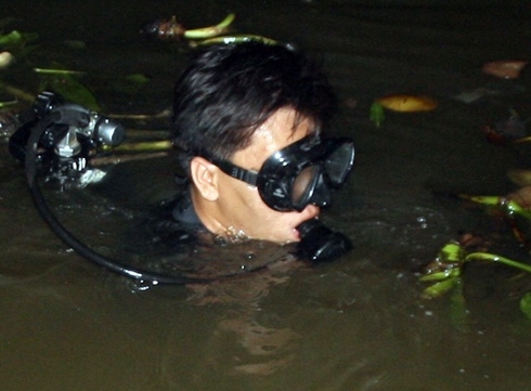 | Lặn mò tìm tang vật vụ án là một trong những phần việc của Đội cứu hộ cứu nạn Phòng Cảnh sát PCCC TP HCM. Ảnh: An Nhơn. |