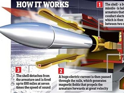 Chuẩn Đô đốc Nevin Carr - quan chức phụ trách hoạt động nghiên cứu hải quân, tiết lộ siêu súng điện từ có thể nhằm trúng kho vũ khí trên một con tàu đối địch và "biến thuốc nổ của chúng thành thuốc nổ của mình". Tuy nhiên, nhà chức trách Mỹ thừa nhận sẽ mất ít nhất 5 năm, thậm chí 10 năm trước khi loại vũ khí này sẵn sàng được sử dụng trên tàu.