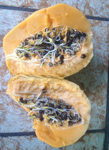 Suýt ngất vì 'Giá đỗ' mọc trong ruột đu đủ