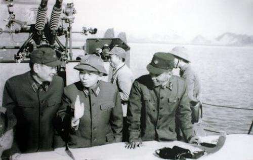Đại tướng Vơ Nguyên Giáp (giữa) trên một con tàu hải quân tháng 3/1973. Ảnh tư liệu