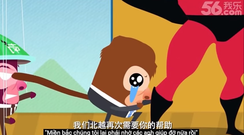 Một clip hoạt hình mà chính phủ Trung Quốc đã tung lên truyền hình trong đó là câu chuyện ví Việt Cộng là loài khỉ, ăn cháo đái bát. Clip đã được lan truyền rộng rãi làm làn sóng phản đối gay gắt trong và ngoài nước. Mặc dù vậy vẫn chưa có phản ứng từ lãnh đạo Cộng Sản Việt Nam.