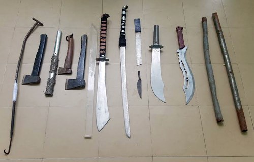 Hung khí cảnh sát thu của nhóm giang hồ. Ảnh: C.A
