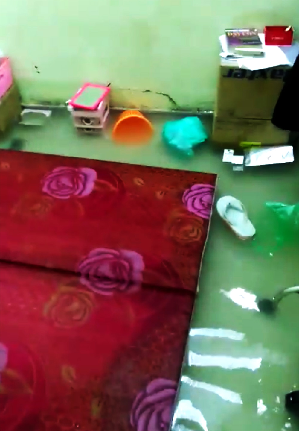 Không chỉ những ngôi nhà nhỏ và phòng trọ tạm bợ mới bị ngập, một ngôi nhà kiên cố cũng bị ngập nước