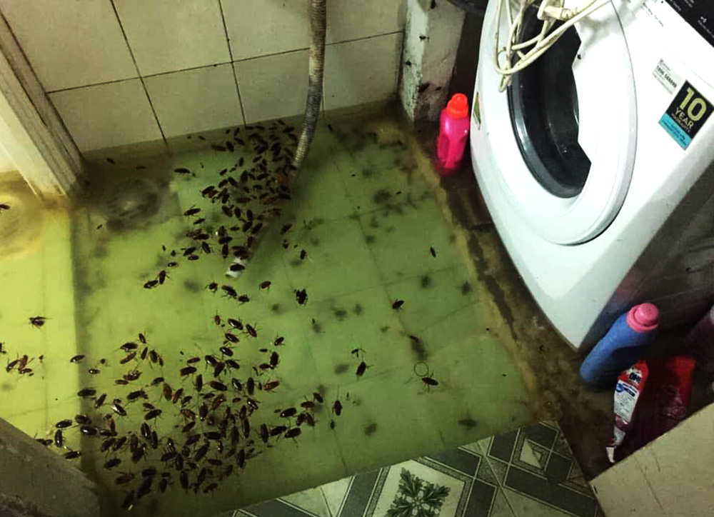 Không chỉ rác thải, tại một nhà dân ở huyện Bình Chánh, xác côn trùng trôi vào nhà khiến người dân lo lắng ô nhiễm môi trường. (Ảnh FB: Phương Linh).
