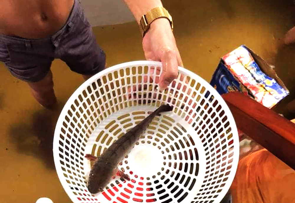 Cá từ ngoài đường bơi vào nhà. (Ảnh FB: Võ Thị Yến Thơ).