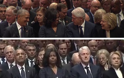 Sự hiện diện của tổng thống Mỹ đương nhiệm Donald Trump tại tang lễ của cựu tổng thống George H. W. Bush dường như đã "phá hỏng" bầu không khí của các tổng thống đảng Dân chủ cùng các cựu đệ nhất phu nhân - những người cười nói và trò chuyện chỉ ít phút trước đó.