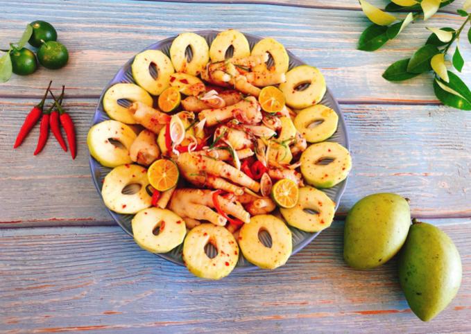 Xoài non trộn chân gà chua cay ngon khó cưỡng. Đây là món ăn chống ngán tuyệt vời trong dịp Tết. Xoài non trộn chân gà chua cay đảm bảo xoá tan cảm giác ngấy mỡ.