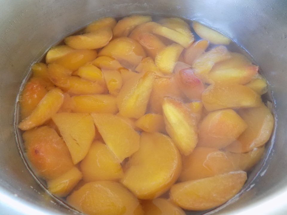 Bước 1: Đào rửa sạch, Nấu 1 nồi nước sôi cho đào vào luộc 2-3 phút ( bước này giúp bạn lột vỏ đào dễ dàng).