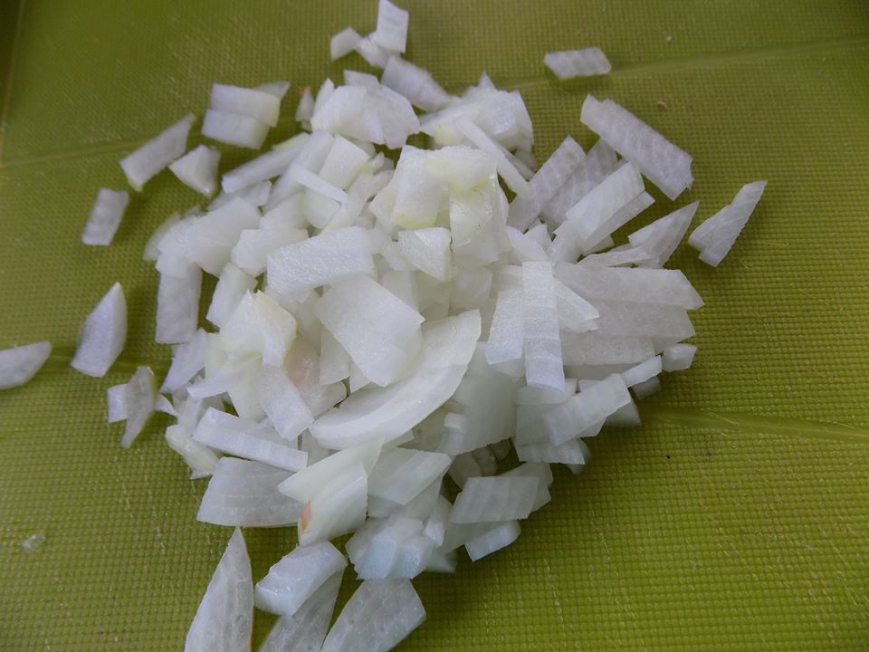 Bước 1: Tỏi và hành tím băm, hành lá thái nhỏ, cà chua thái hạt lựu, hành tây thái nhỏ